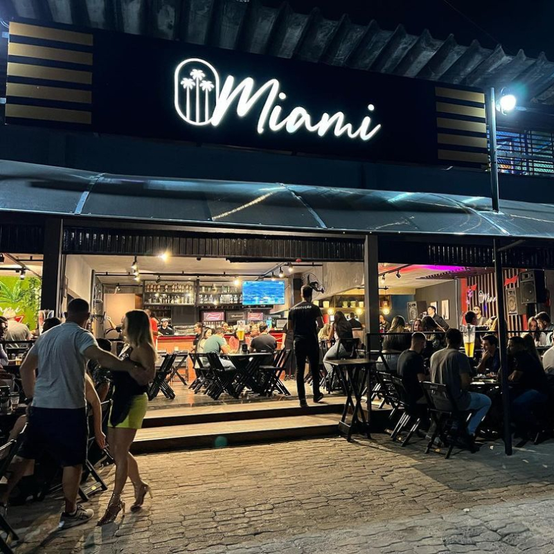 O Miami fica localizado na Avenida Brasil, 7409, o local conta com salão, segundo andar com espaço kids, área externa com deck e mesas com ombrelones.