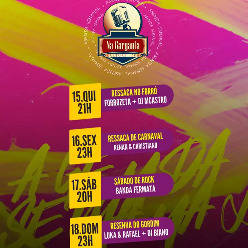Agenda Semanal – Na Garganta Culture Pub