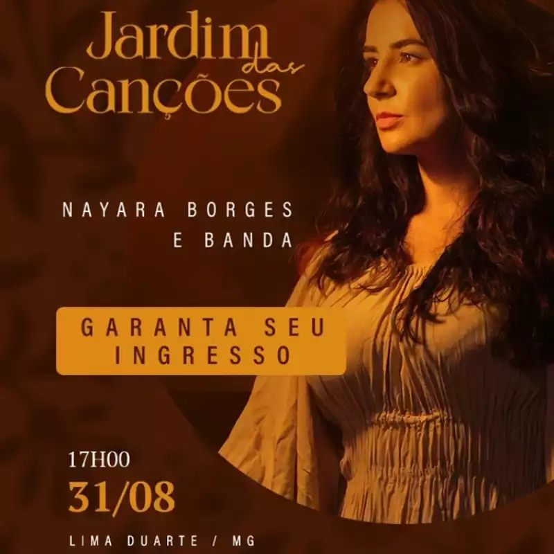 No dia 31/08 (sábado), a cantora Nayara Borges apresenta seu show "Nayara Borges e Banda – Jardim das Canções".