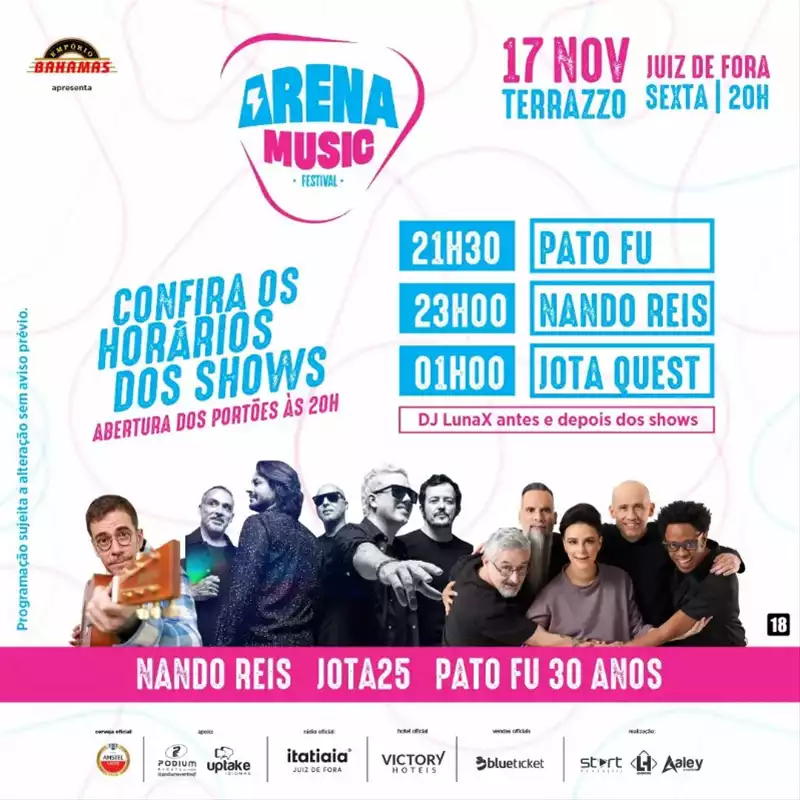 No dia 07/06 (sábado), a partir das 18h, vai rolar mais uma edição do Arena Music Festival (@arenamusicjf), no Terrazzo, em Juiz de Fora.