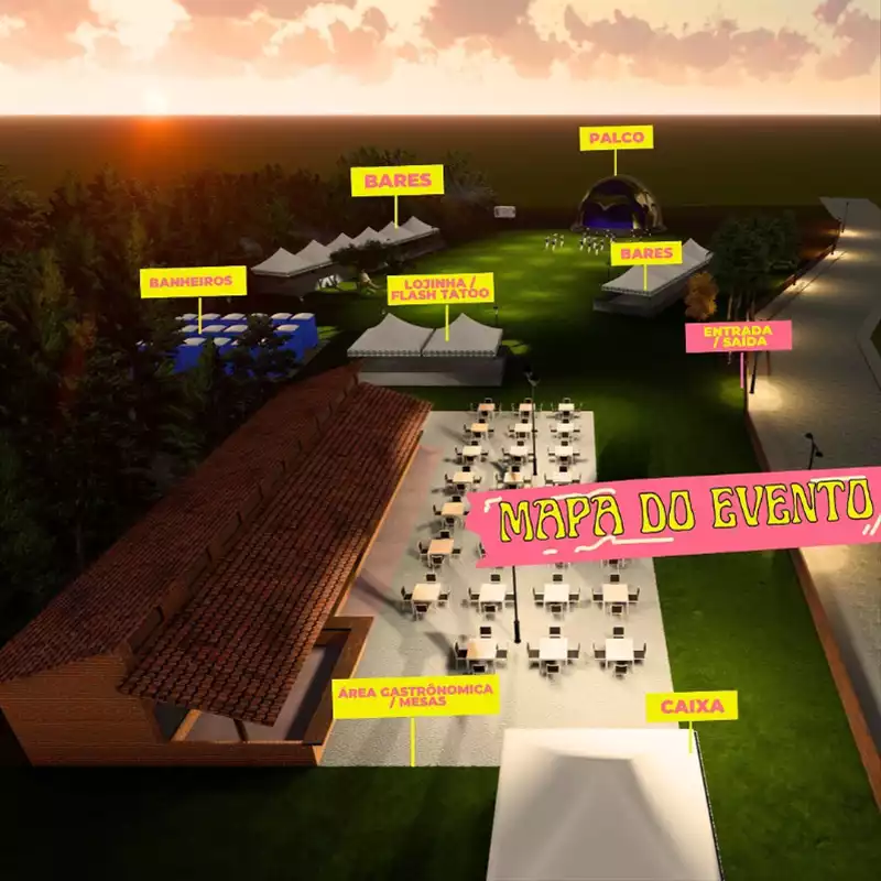 O evento ocorre no Espaço Serra Bela, na estrada para o parque estadual (a 500 metros do Centro da vila sentido ao parque, em frente ao camping Pinheiros), e é 100% open bar.