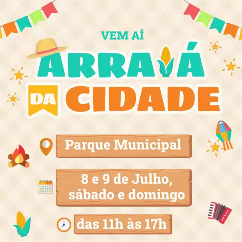 Nos dias 08/07 (sábado) e 09/07 (domingo) ocorre o Arraiá da Cidade, no Parque Municipal, em Juiz de Fora.