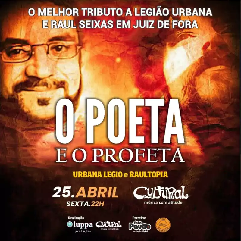 No dia 25/04 (sexta-feira), a partir das 20h, o Cultural Bar recebe o tributo O Poeta e o Profeta, com as bandas Urbano Legio e Raultopia.