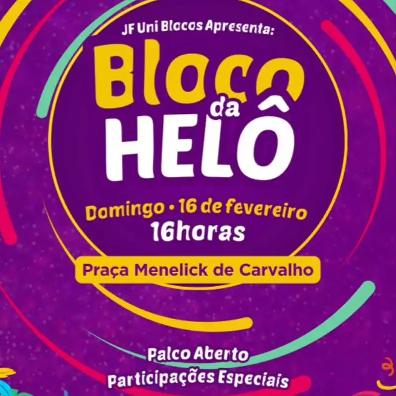 No dia 16/02 (domingo), a partir das 16h, ocorre a 2ª edição do Bloco da Helô, na Praça Menelick de Carvalho.