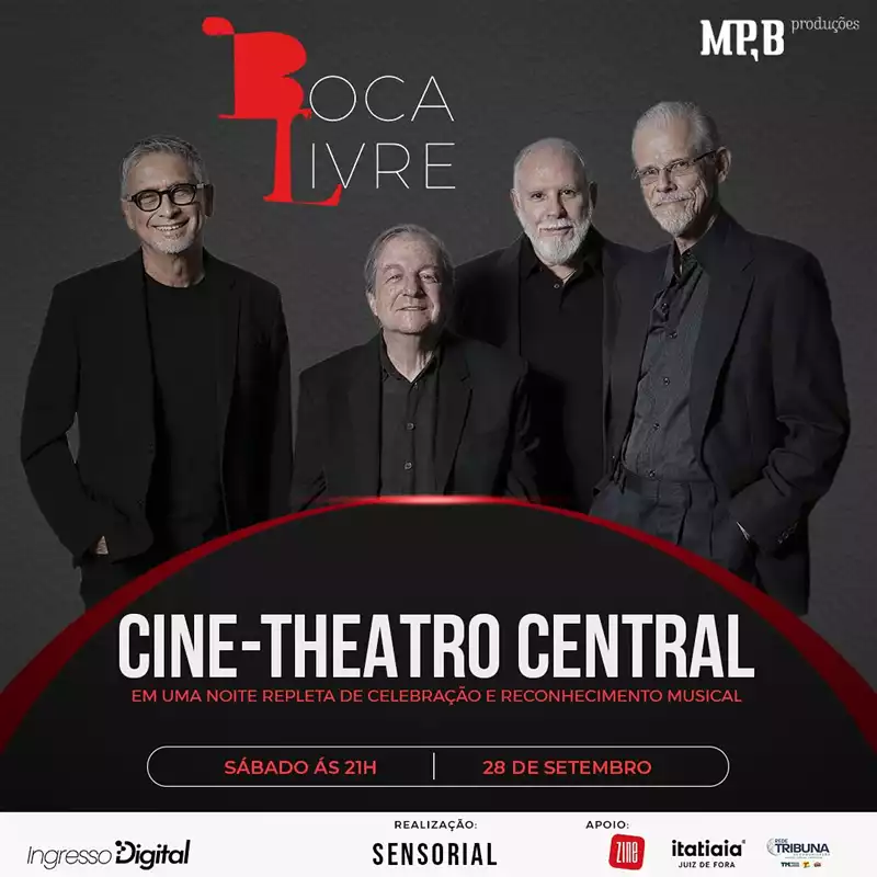 No dia 28/09 (sábado), a partir das 21h, o Cine-Theatro Central recebe Boca Livre em Juiz de Fora.