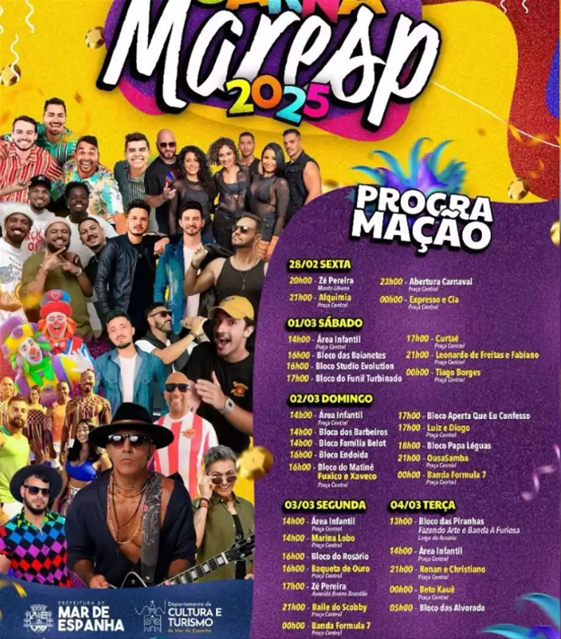 Tem programação de carnaval confirmada em Mar de Espanha.