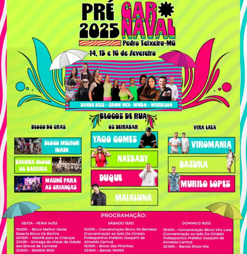 Nos dias 14, 15 e 16 de fevereiro ocorre o Pré-Carnaval de Pedro Teixeira!