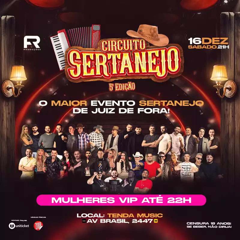 No dia 01/11 (sábado), a partir das 21h, ocorre a 7ª edição do Circuito Sertanejo em Juiz de Fora, no Sport Club.