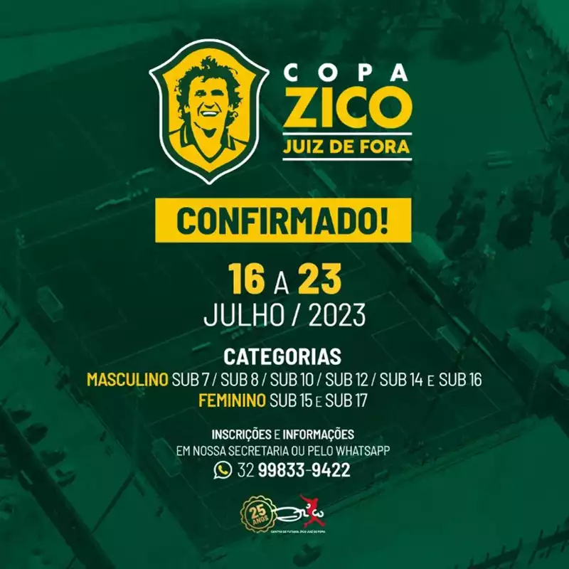 Do dia 16/07 (domingo) até 23/07 (domingo) ocorre a Copa Zico em Juiz de Fora, no Centro de Futebol Zico JF.