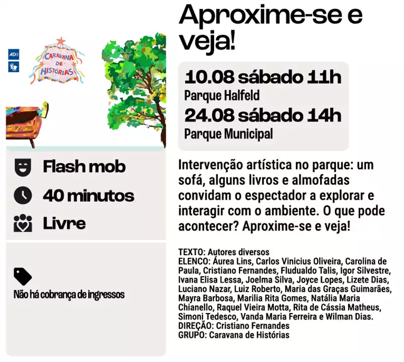 - No dia 10/08 (sábado), às 11h, no Parque Halfeld;