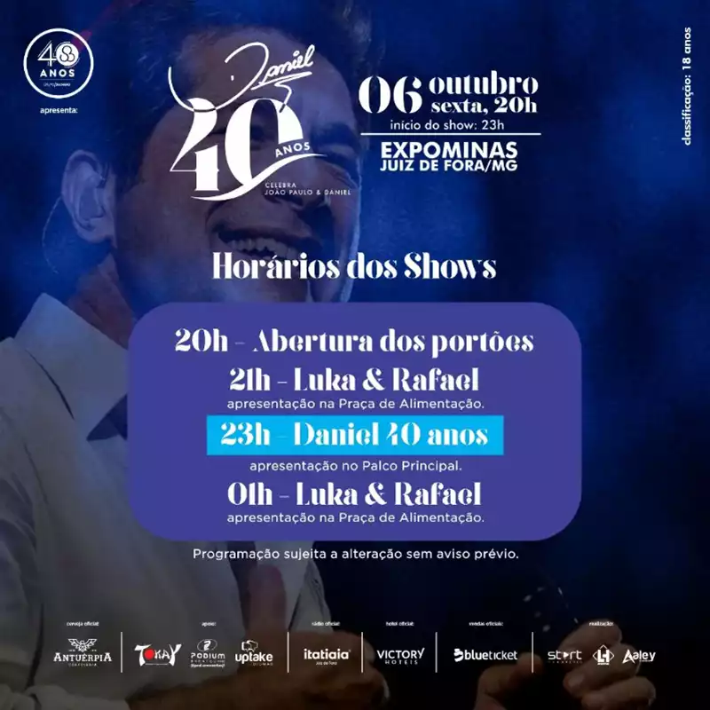 No dia 06/10 (sexta-feira), a partir das 20h, o Expominas recebe Daniel em Juiz de Fora!