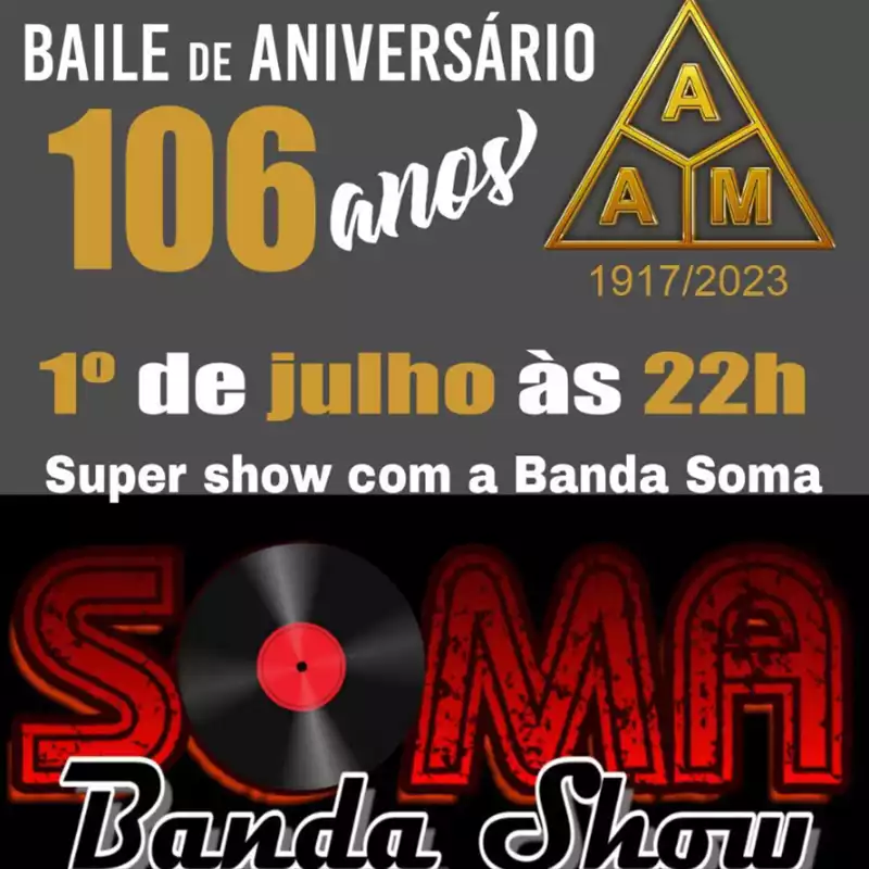 O evento será no Salão Social da Atlética e recebe show com a Banda Soma e o DJ Marquinhos Vovô nos intervalos.