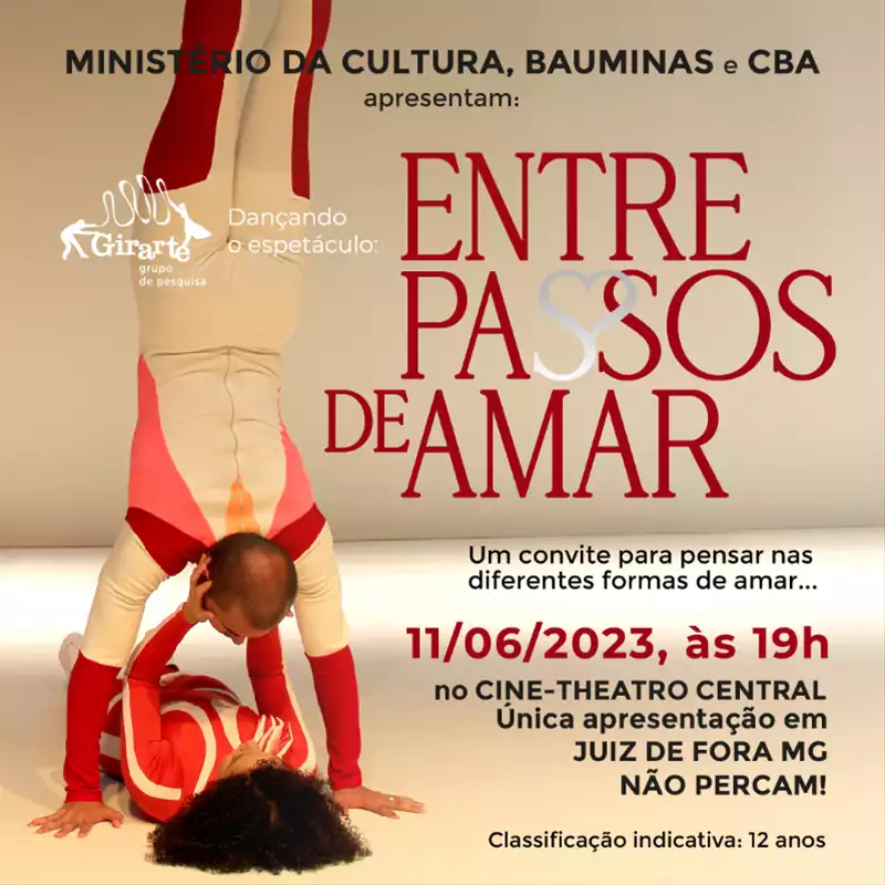 No dia 11/06 (domingo), a partir das 19h, o Cine-Theatro Central recebe o Espetáculo de Dança "Entre Passos de amar" em JF.