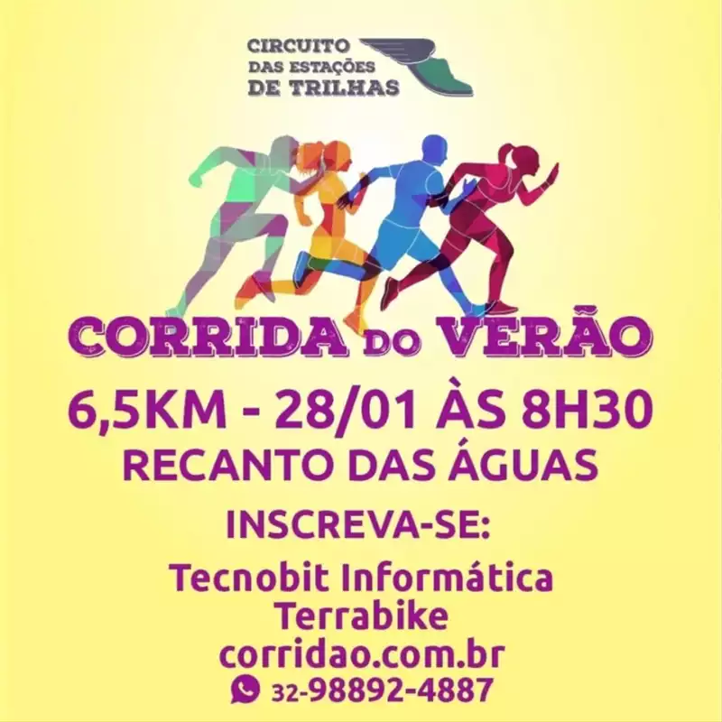 No dia 28/01 (domingo), com largada às 08h30, o Circuito das Estações de Trilhas realiza edição da Corrida do Verão, no Recanto das Águas, em Juiz de Fora.