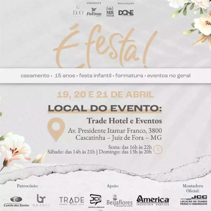 Entre os dias 19/04 (sexta-feira) e 21/04 (domingo), ocorre a edição 2024 do É Festa!, no Trade Hotel.