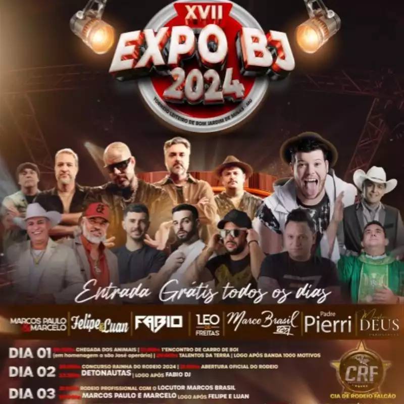 A Expo BJ terá shows de Detonautas, Ferrugem, Marcos Paulo & Marcelo, entre outros.