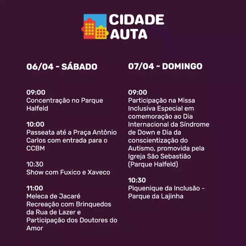 O evento busca promover a inclusão, valorização, conscientização e protagonismo das pessoas com autismo e tem como objetivo criar um espaço de aprendizado, compartilhamento e celebração para as pessoas com autismo, seus familiares e a comunidade.