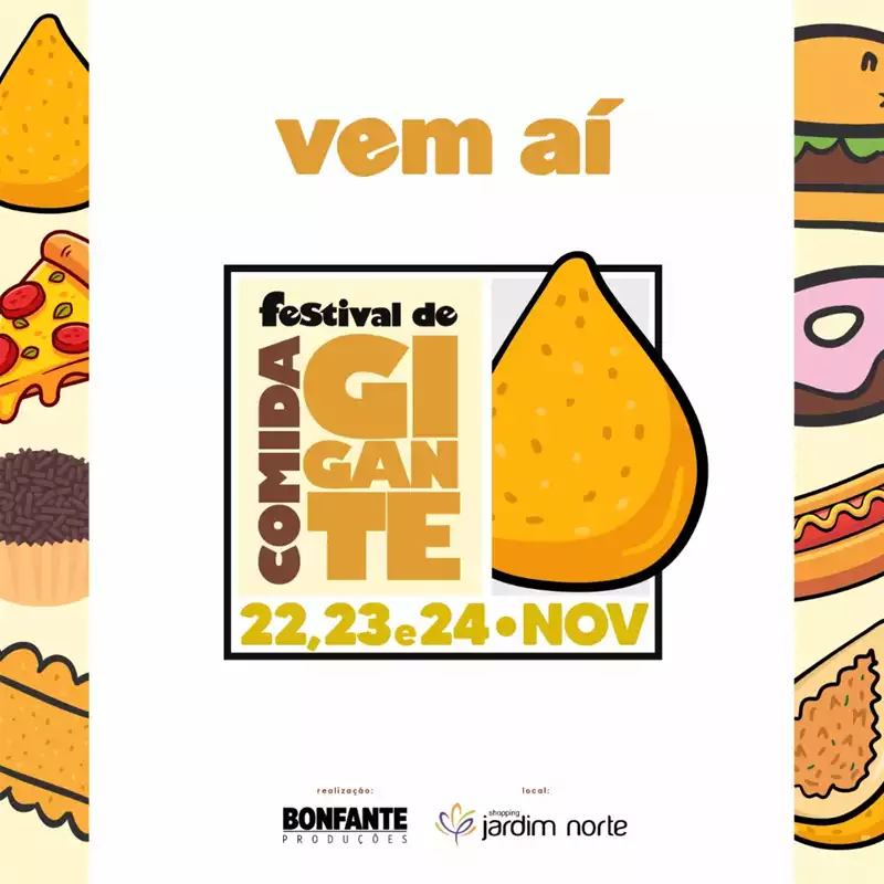 Entre os dias 09 e 12/10 (quinta-feira a domingo) e 16 e 19/10 (quinta-feira a domingo) ocorre o Festival de Comida Gigante (@festivaldecomidagigante) em Juiz de Fora.