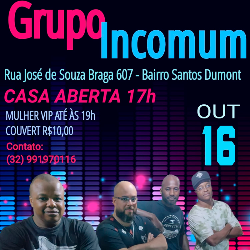 Vai rolar Grupo Incomum em Juiz de Fora, no dia 16/10 (domingo), às 16h.