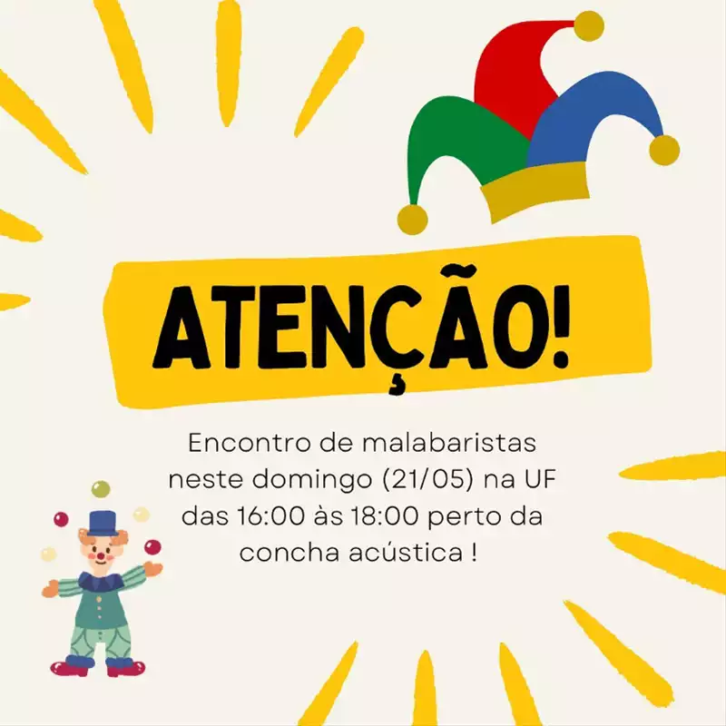 No dia 21/05 (domingo), a partir das 16h, ocorre o Encontro de Malabaristas.