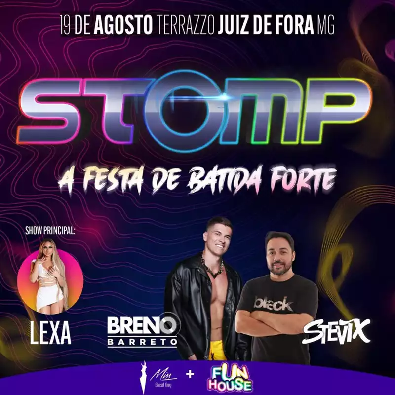 A tradicional Festa Stomp ocorre no dia 23/08 (sábado), às 23h59, após o concurso, no Terrazzo. Confira os detalhes na agenda!