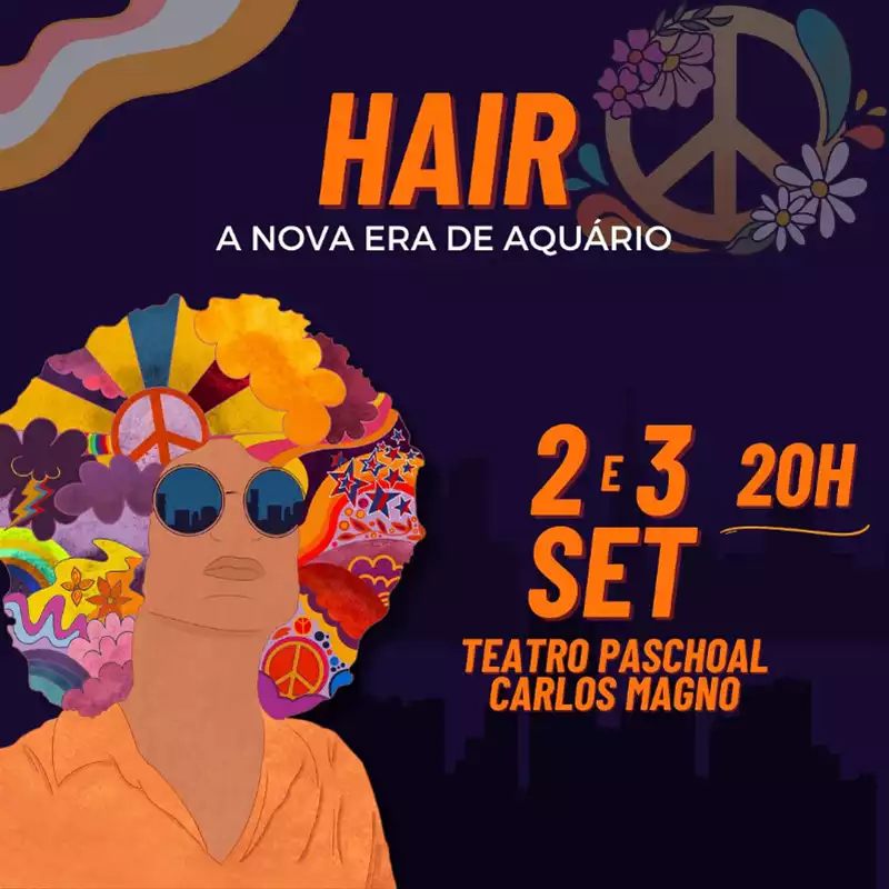 Hair é um rock musical escrito por James Rado e Gerome Ragni. A Era é de aquário e a história que gira em torno de uma tribo de hippies que vivem conceitos nada convencionais sobre comportamento e sociedade. Claude, um dos membros da tribo, é recrutado para a guerra e vive um conflito entre o alistamento militar e a liberdade de ser quem se é. O musical Hair é a favor da vida, da liberdade sexual, da diversidade, da paz e do amor. Um basta a preconceitos, racismo, intolerâncias, hipocrisia e a ignorância. O grito de liberdade do musical ecoa em todos os lugares até hoje.