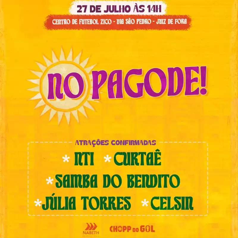 No dia 27/07 (sábado), o Centro de Futebol Zico recebe o evento No Pagode em Juiz de Fora.