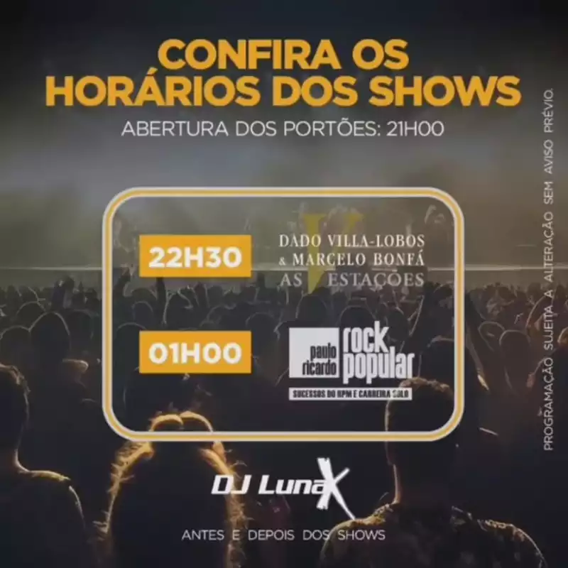 Serão dois shows completos: Dado Villa-Lobos & Marcelo Bonfá apresentam a turnê "As V Estações" e Paulo Ricardo a turnê "Rock Popular".
