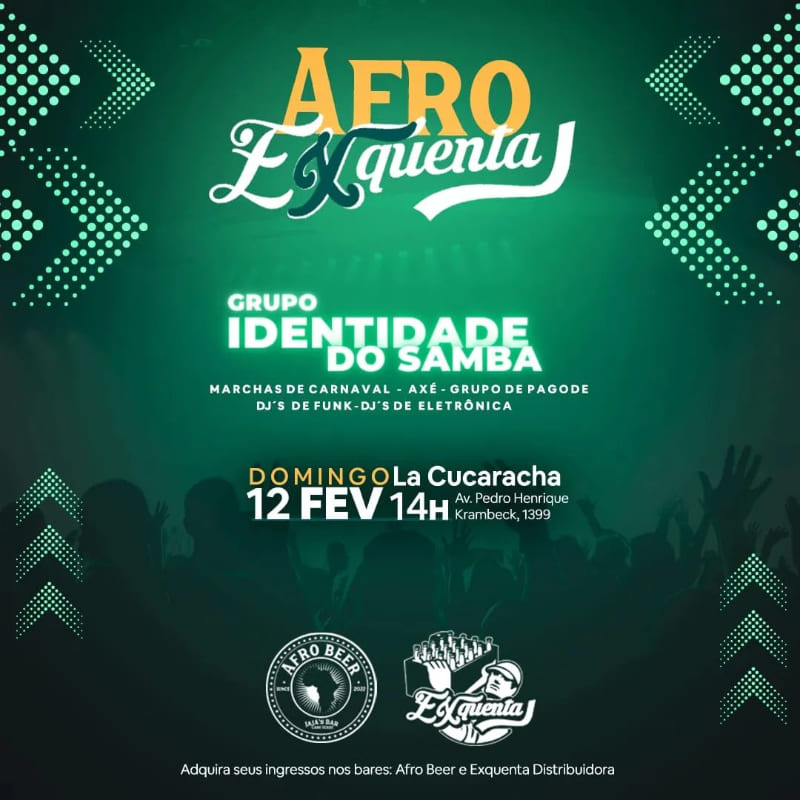 No dia 12/02 (domingo), a partir das 14h, ocorre o pré-carnaval AfroExquenta, no Bar La Cucaracha.