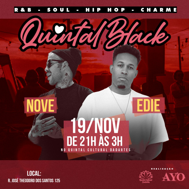 No dia 19/11 (sábado), às 21h, o Quintal Cultural Dadarte recebe o evento "Quintal Black" em Juiz de Fora.