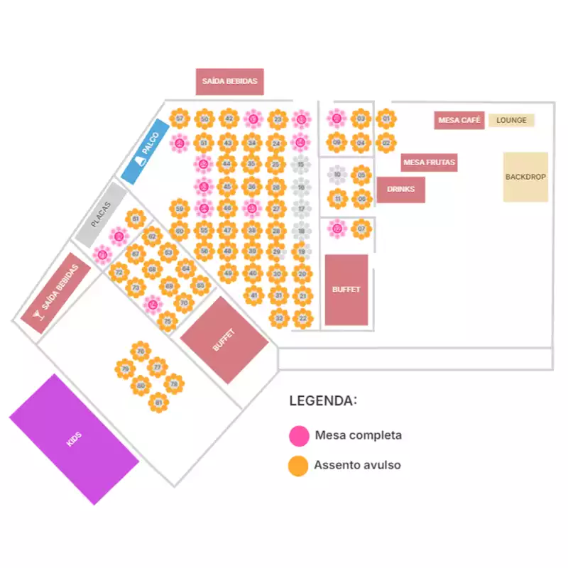 Atenção: Para compra de mesas nos pontos de venda físicos é necessário o nome completo e e-mail de todas as pessoas que irão compor a mesa.
