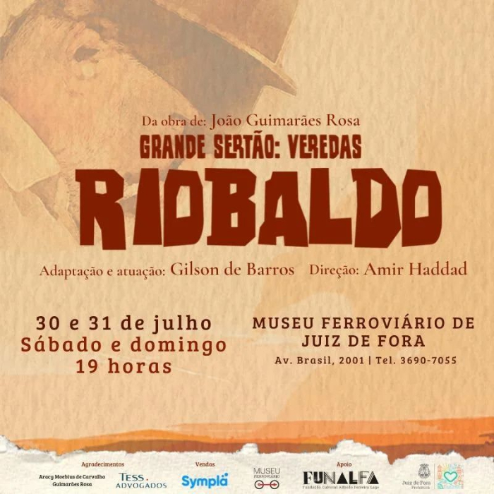 Nos dias 30/07 (sábado) e 31/07 (domingo), o Museu Ferroviário recebe a peça de teatro Riobaldo (@riobaldoapeca) em Juiz de Fora.