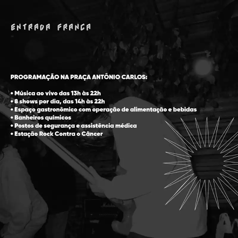 Do dia 07/09 (quinta-feira) até 10/09 (domingo) ocorre o JF Rock City, na Praça Antônio Carlos.