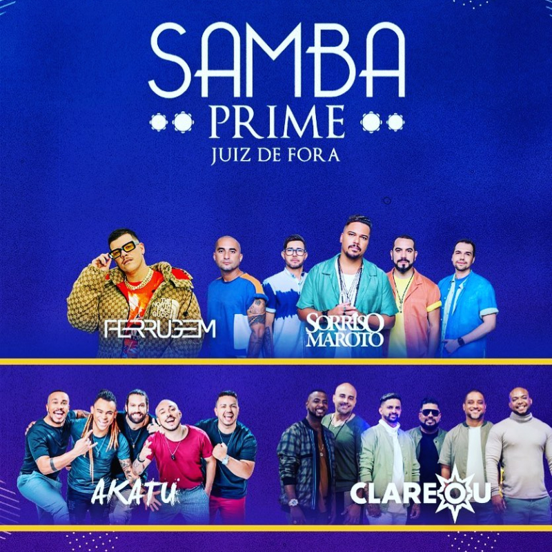 A abertura dos portões do Samba Prime Juiz de Fora será às 18h30 e o primeiro show está marcado para às 20h.Confira a ordem dos shows: