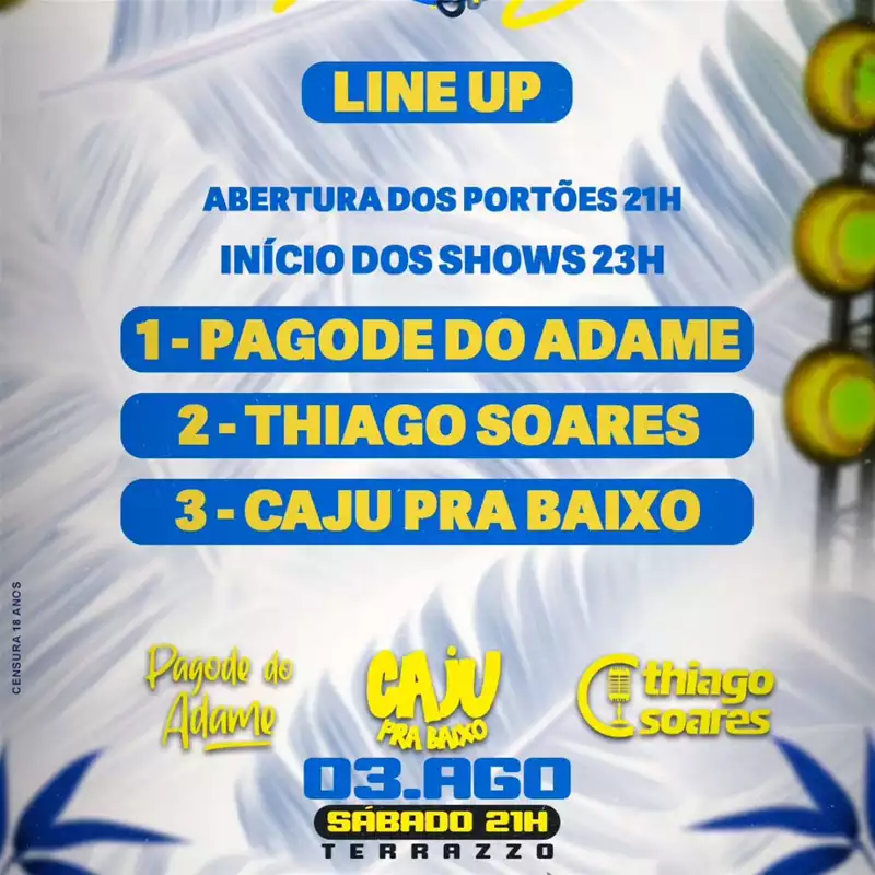 O line-up conta com Renan Oliveira, Thiago Soares, Fabinho, Yan, DJs WM e Ramon.