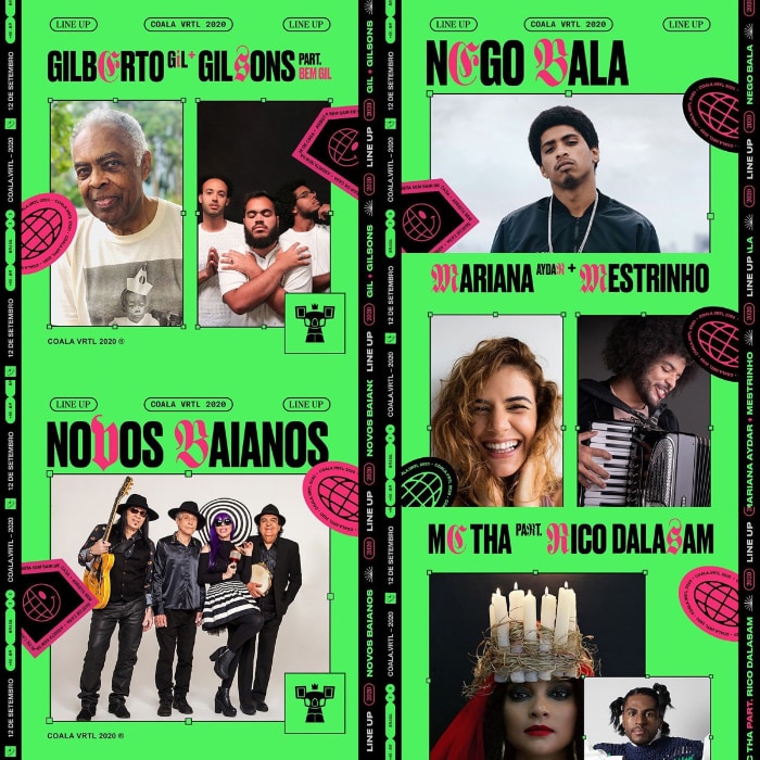 No dia 12/09 (sábado), a partir das 20h, ocorre o Coala Festival 2020, com transmissão na íntegra no Youtube. A TNT também irá transmitir por meio da TV das 20h às 22h, o show do Gilberto Gil e o trio Gilsons. Também já estão confirmados Novos Baianos, Nego Bala, MC Thaa, Mariana Aydar e Mestrinho.