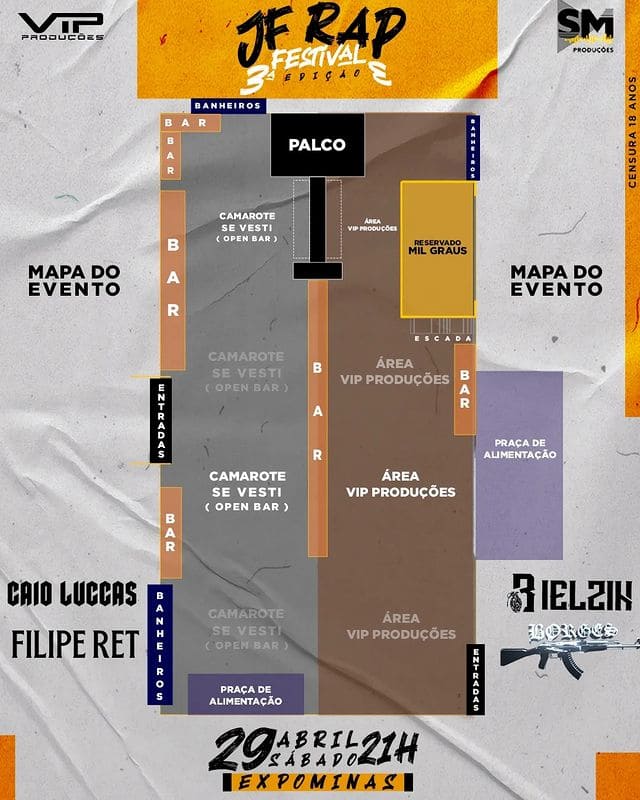 A organização é da Vip produções (@vipproducoesjf) e SM produções (@smproducoesoficial). Confira como adquirir seu ingresso: