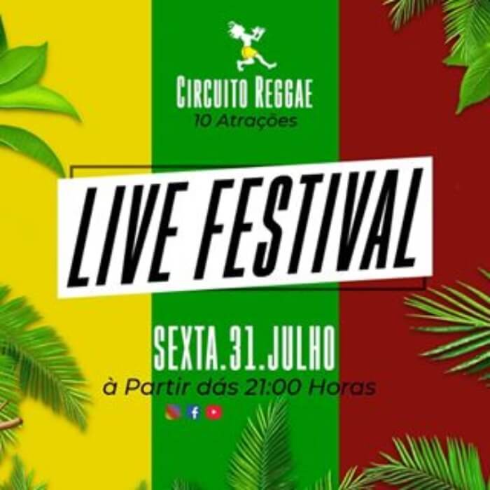 A live Circuito Reggae ocorrerá no dia 31/07 (sexta-feira), a partir das 21h, com transmissão no Youtube. O Circuito contará com 10 atrações, que serão divulgadas em breve pela produção do evento.