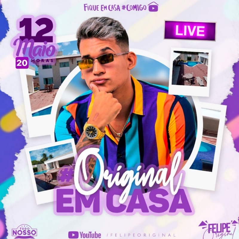 No dia 12/05 (terça-feira), às 20h, ocorre a live do Felipe Original que será transmitida em seu canal oficial do Youtube! Com uma das músicas mais tocadas de 2019, “Hit Contagiante”, o cantor prepara uma apresentação com outros sucessos do ritmo bregafunk.