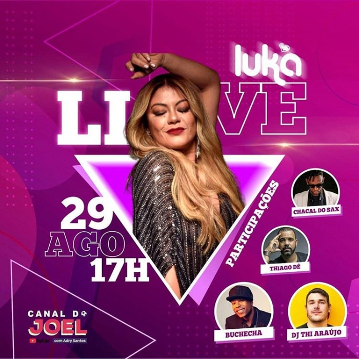 No dia 29/08 (sábado), a partir das 17h, ocorre a segunda live da Luka, com transmissão no Youtube. Durante a apresentação, a cantora receberá Buchecha, DJ Thi Araújo, Thiago Dê e Chacal do Sax para participações especiais.
