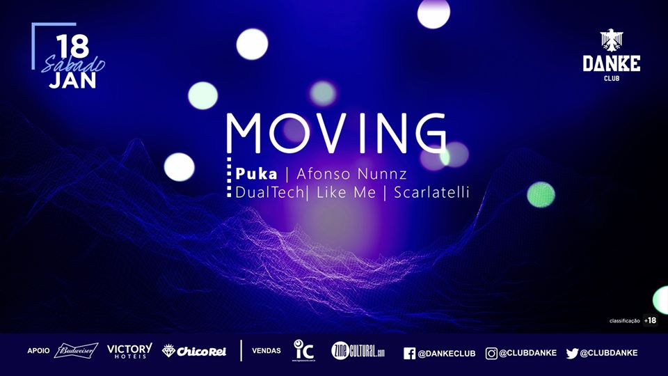 No dia 18/01 (sábado), ocorre a terceira edição da festa Moving, na Danke Club. O evento surgiu com a promessa de uma noite com o que há de mais fiel e novo dentro da E-music – grooves do low bpm e mistura de artistas experientes com os novos projetos da região, aliados ao minimalismo visual que a pista da casa proporciona ao público. A produção promete cumprir com o propósito mais uma vez: “Dançar até viver!
