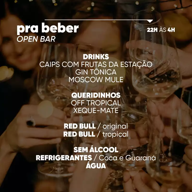 O evento será open bar e open food e, claro, terá atrações musicais para animar a noite e começar o novo ano da melhor forma!