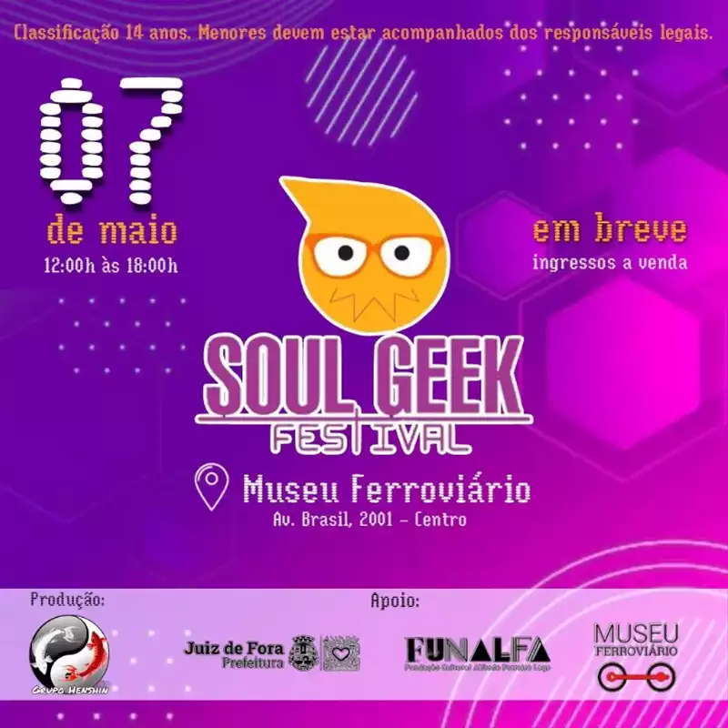 No dia 07/05 (domingo), a partir de 12h, ocorre o Soul Geek Festival no Museu Ferroviário.