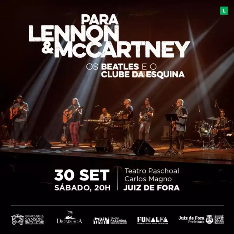 No dia 30/09 (sábado), o Teatro Paschoal Carlos Magno recebe o espetáculo “Para Lennon & McCartney – os Beatles e o Clube da Esquina" em Juiz de Fora.