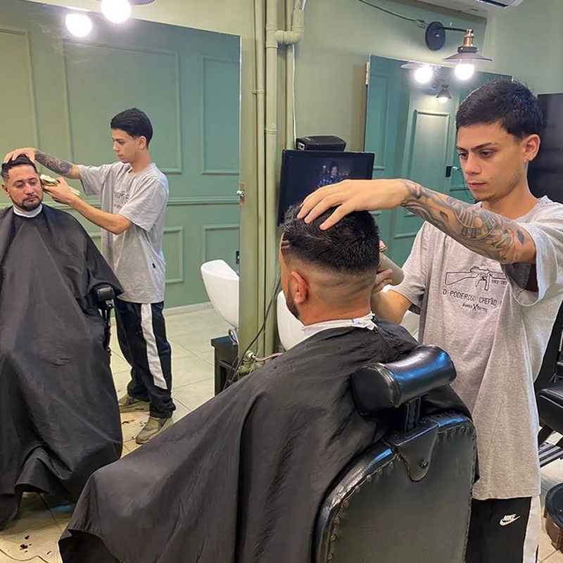 O estúdio/barbearia O Poderoso Chefão Inc. conta com 3 barbeiros, uma piercer e um tatuador.
