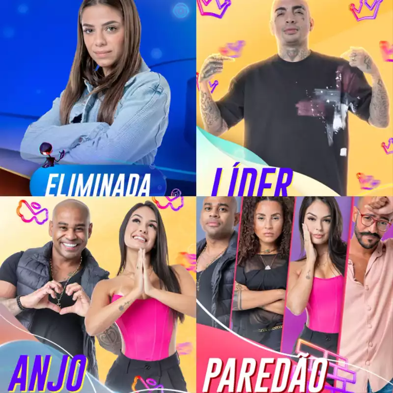 Tina foi a eliminada da semana, Gustavo levou o líder de novo, Amanda venceu o Anjo e o paredão foi quádruplo. (Fotos: reprodução Instagram)