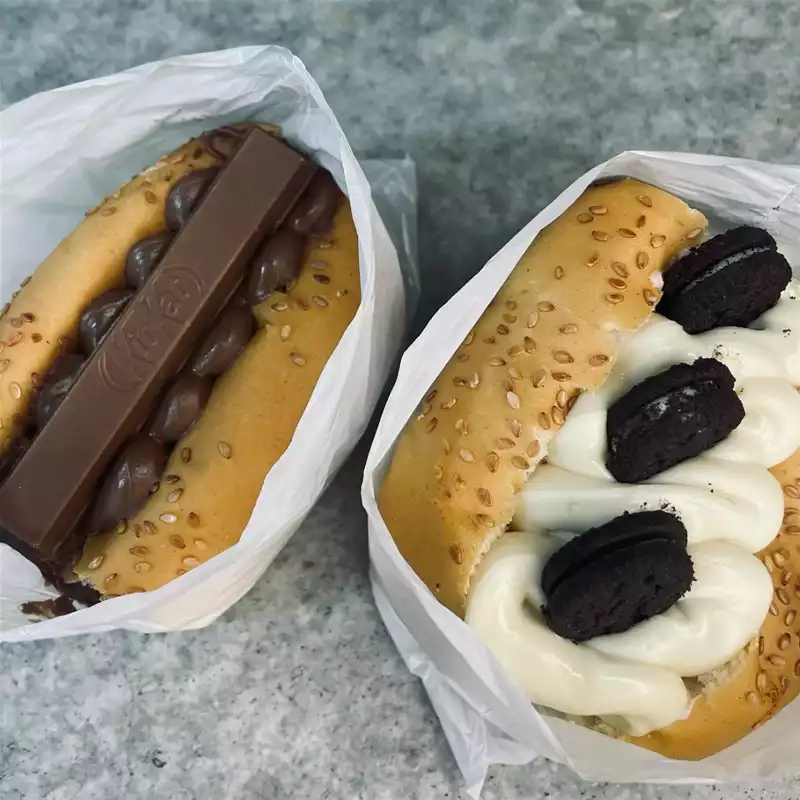 🌭 Diferencial: Opções especiais com Doritos, Ruffles e bacon, além das doces com confeti, mini Tortuguita, mini Oreo e KitKat.