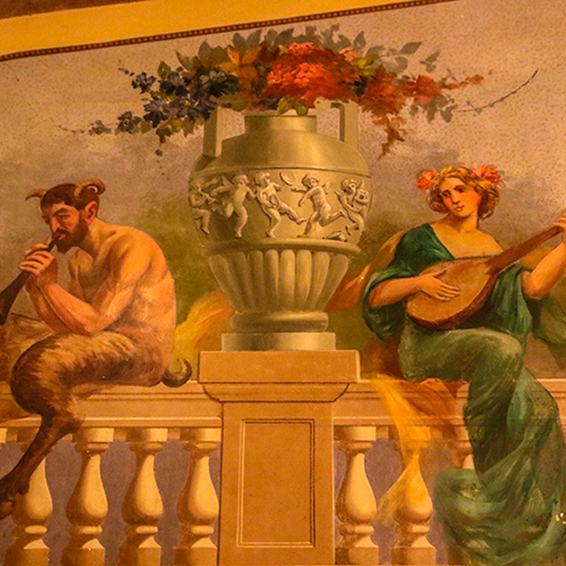 Teto com pintura de Angelo Bigi. (Foto: Fernando Priamo)