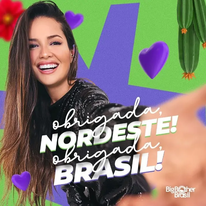 O resultado de tanto sucesso ficou registrado na grande final do reality, no dia 04/05/21, quando a sister paraibana foi escolhida pelo público para ser a nova CAMPE�f do programa em 2021, com 90,15% dos votos.