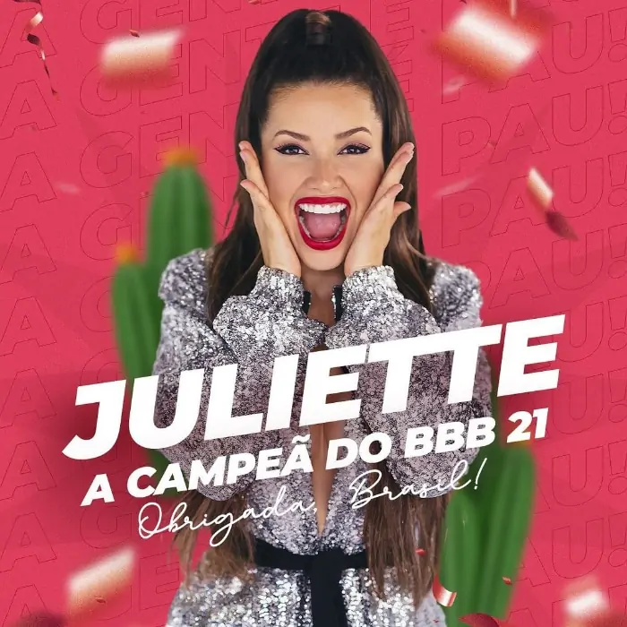 �? isso mesmo! A campeã Juliette do BBB21, além de levar o prêmio de R$ 1 milhão e meio pra casa, conquistou também a marca de terceira participante mais votada para se tornar o verdadeiro nome da edição.